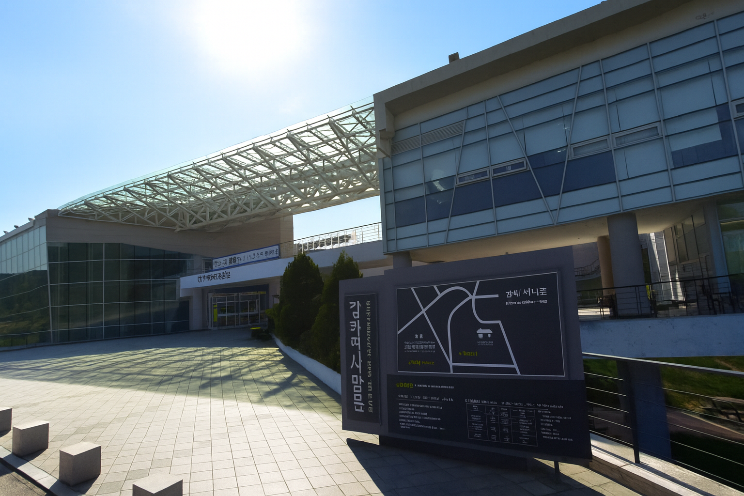 박물관 정문 앞 조형물과 정원