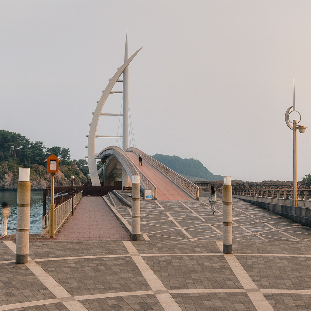 다리 전체 길이는 약 169m, 너비 4m로 규모는 크지 않지만, 이 다리를 건너는 동안 만나는 제주의 바다, 배, 불빛, 바람, 섬, 음악이 특별한 기억으로 남게 만듭니다.