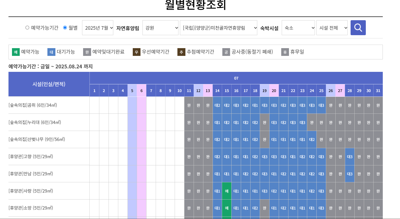 - 아세안자연휴양림: 전 객실 우선예약 대상