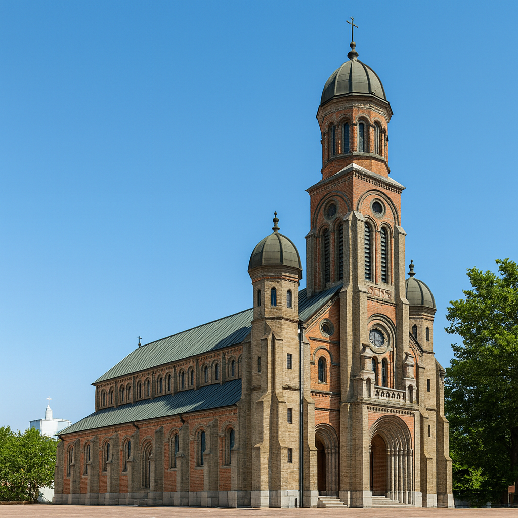 - 건축 양식: 로마네스크 양식과 비잔틴 양식이 혼합된 독특한 형태로, 둥근 아치와 원형 돔, 붉은 벽돌 외벽이 인상적입니다.
