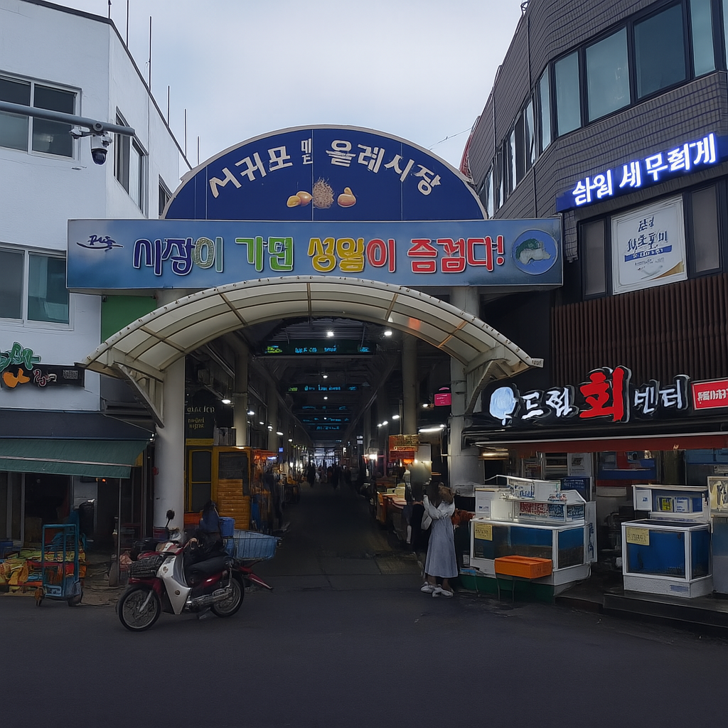 제주 서귀포 중심부에 자리한 서귀포 매일올레시장은 1960년대 자연적으로 형성된 전통시장으로, 60년 이상의 역사를 간직한 제주 최대 규모의 재래시장입니다.