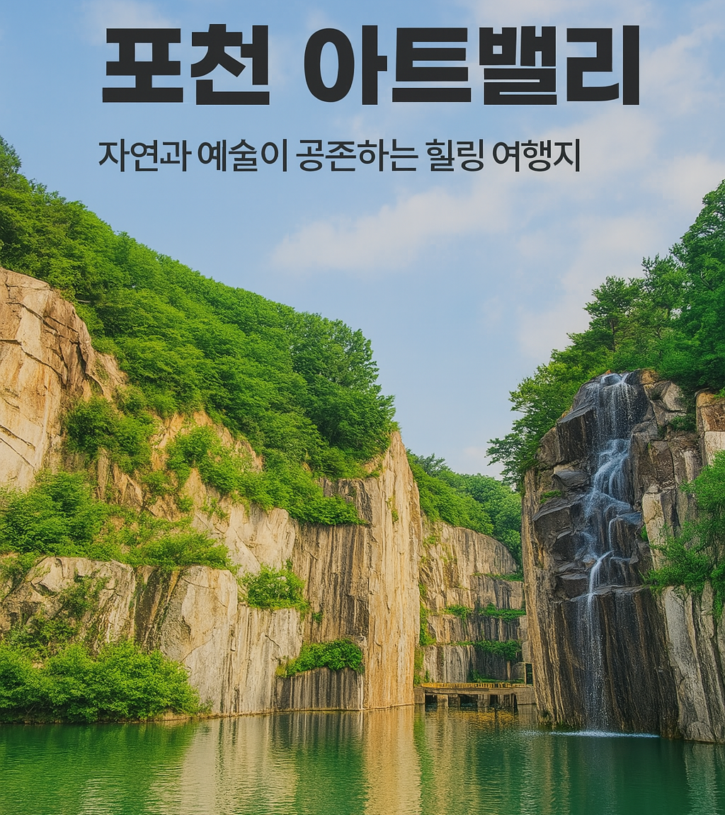 포천 아트밸리는 폐채석장이 ‘자연+예술’ 힐링 공간으로 완벽하게 변신한 포천의 대표 명소입니다. 1990년대까지 채석용 화강암만 있던 이곳은, 지금 에메랄드빛 호수와 절벽이 어우러진 풍경을 자랑하며 연간 40만 명 이상이 찾는 인기 여행지로 거듭났습니다.