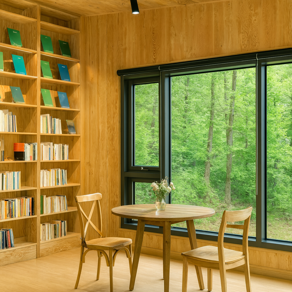 숲속 테라스 독서 공간 – 바람과 새소리를 들으며 시를 읽을 수 있음